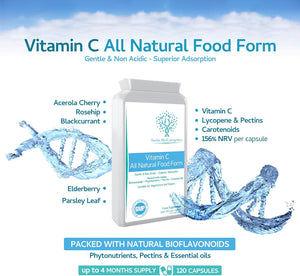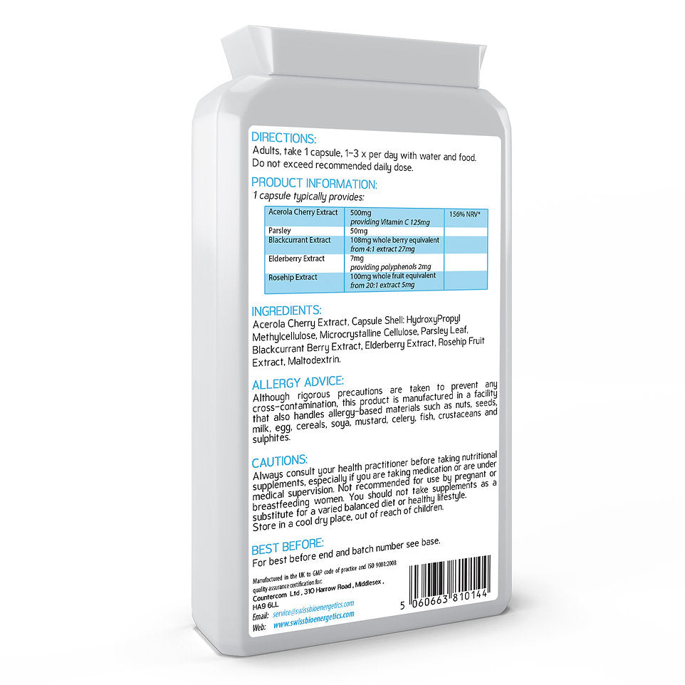 فيتامين سي طبيعي من الكرز الهندي 125 ملغم وثمر الورد والبلسان والكشمش الاسود وبقدونس 120 كبسولة Swiss Bioenergetics Natural Vitamin C All-Natural Food Form Packed with Bioflavonoids, Pectins, Essential Oils & phytonutrients (Best Before 02-03-2028)