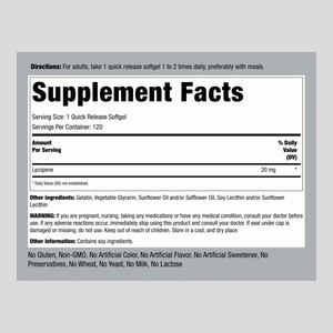 يُقدّم بايبينغ روك لايكوبين ٢٠ ملغ جرعةً مُعدّلة بدقة من التغذية المُضادة للأكسدة! يُعرف الليكوبين بأنه يُعطي الطماطم لونها الأحمر الزاهي، وهو صبغة نباتية كاروتينية ذات نشاط مضاد للأكسدة عالي. نفخر بتقديم تغذية عالية الجودة من الليكوبين في كبسولاتنا الهلامية سريعة الامتصاص. يُعدّ لايكوبين ٢٠ ملغ من بايبينغ روك مُكمّلًا غذائيًا عمليًا واقتصاديًا لتعزيز دفاعات الجسم المضادة للأكسدة ودعم صحتك العامة.