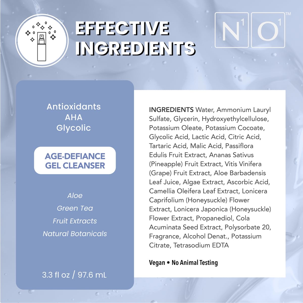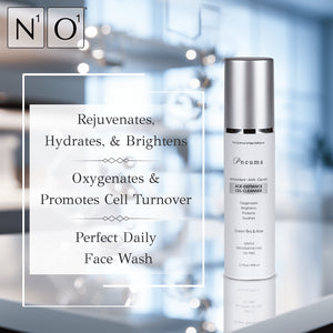 منظف جل مقاومة التقدم بالسن مع مضادات الأكسدة حمض الجليكوليك يغذي البشرة ويقشرها ويحميها ويهدئها جل منظف لطيف للوجه شاي أخضر وصبار 97 مل Pneuma Age-Defiance Gel Cleanser with Antioxidant AHA Glycolic Oxygenate, Exfoliate